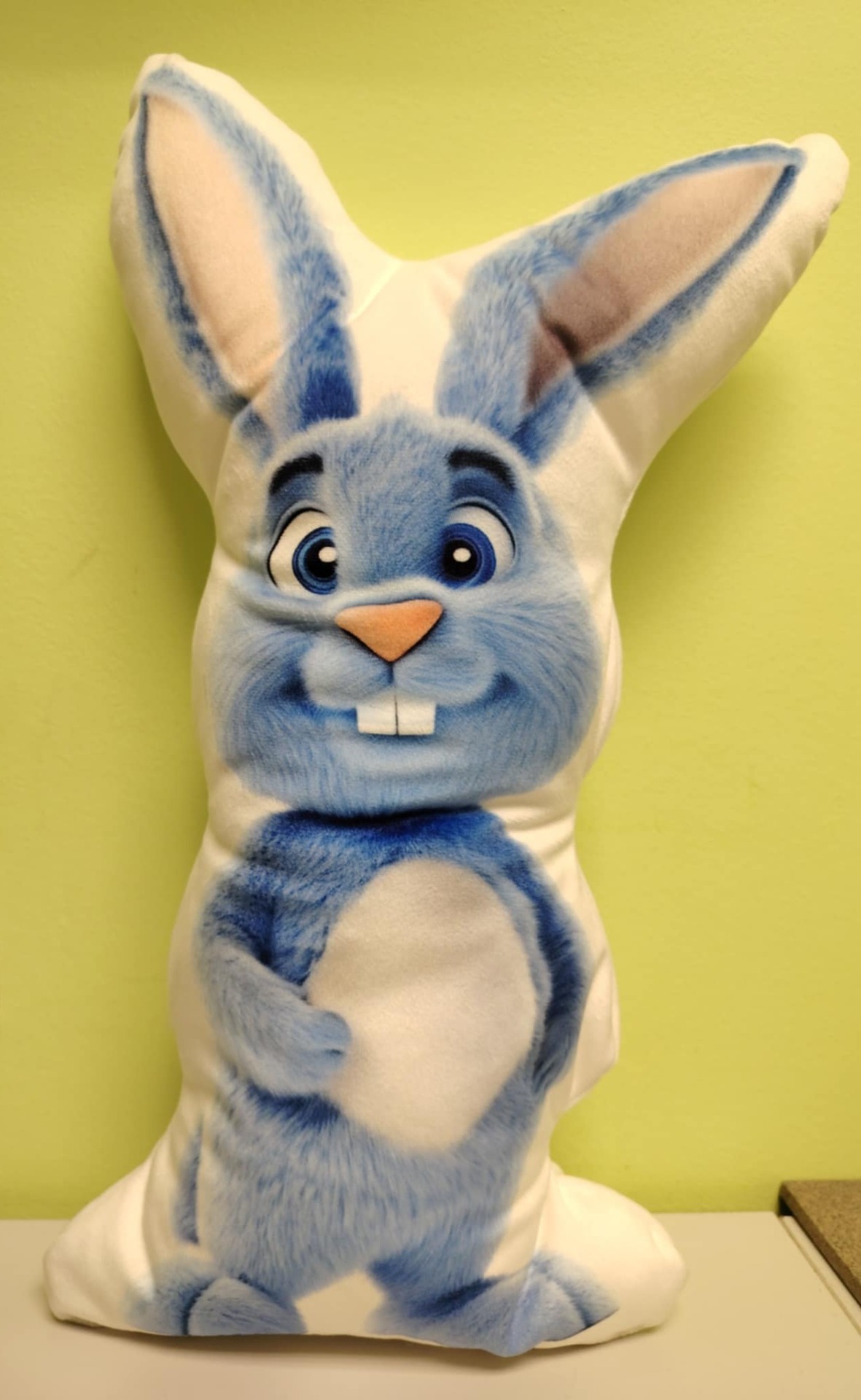 Velký zajíc 21x41 cm. Materiál Kate, výplň Pes kuličky. Oba materiály mají atest i pro velmi malé děti. Údržba - pere se celý polštářek na 30 stupňů, ždímat max.na 800 otáček. Při sušení občas protřepat. Nedávat do sušičky!!!