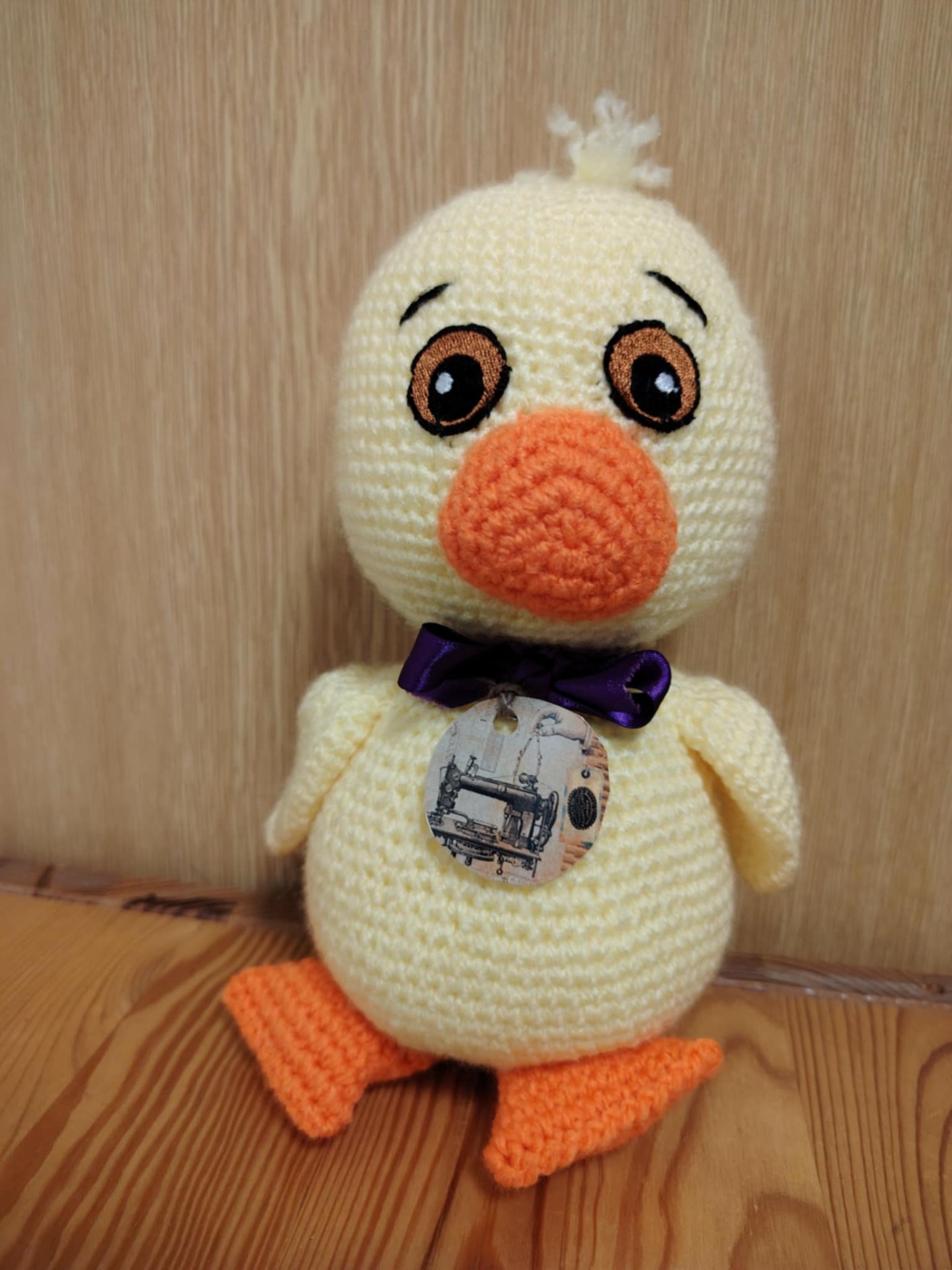 Háčkovaná kačenka s fialovou mašlí