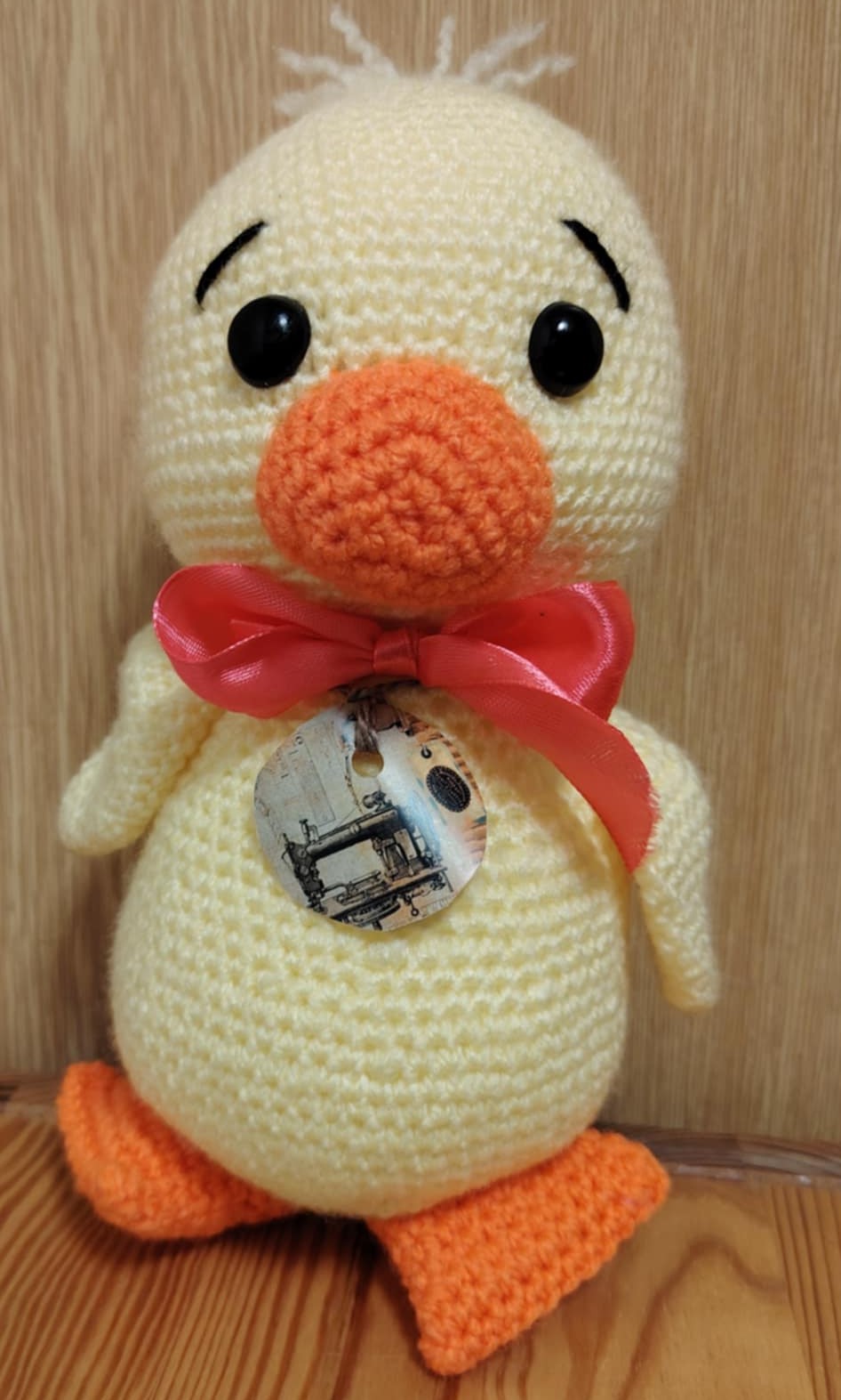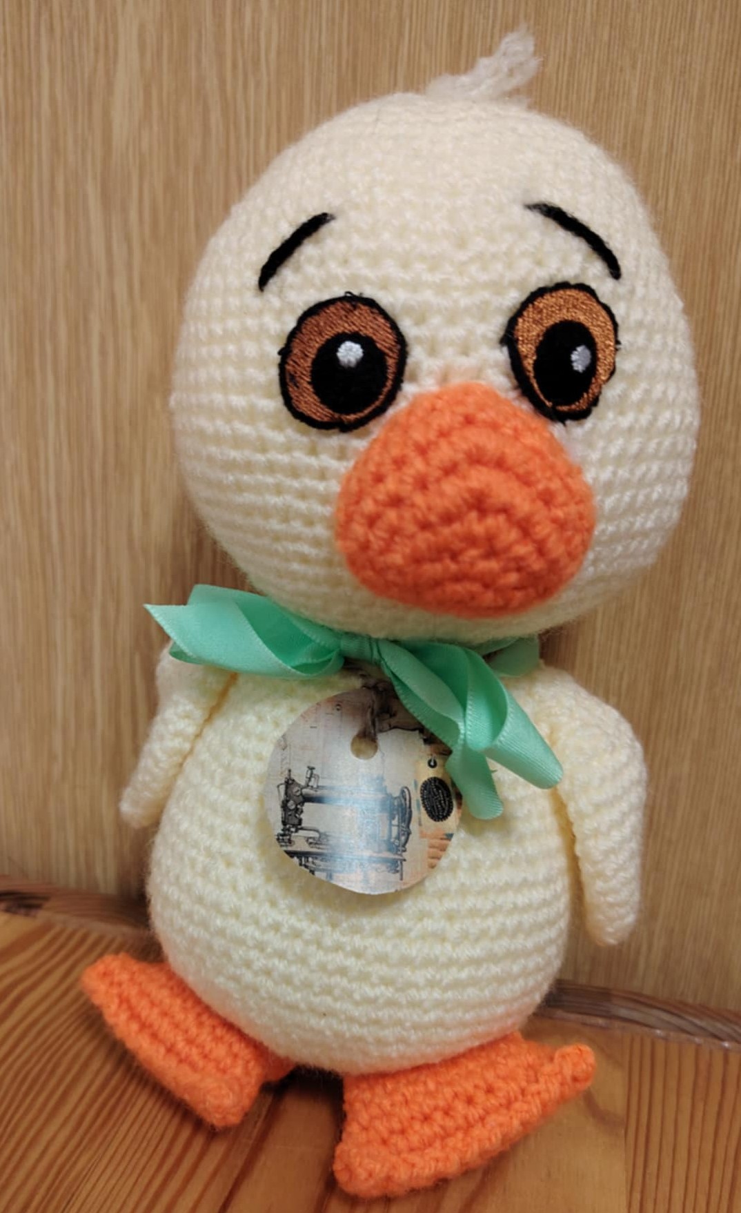 Háčkovaná kačenka se zelenou mašlí